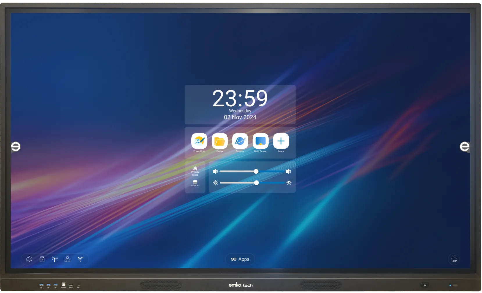 EmkoBoard V5, eğitim ve iş dünyasının değişen ihtiyaçlarına yanıt veren, güçlü donanımı ve akıllı yazılımıyla öne çıkan bir akıllı tahta çözümüdür. Android 14 işletim sistemiyle çalışan bu model, 8 GB RAM ve 128 GB depolama alanı sayesinde çoklu uygulamaları eş zamanlı ve akıcı biçimde çalıştırır. 40 noktalı dokunmatik ekranı, çoklu kullanıcı etkileşimini destekleyerek iş birliğini artırır. Yapay zekâ destekli altyapısı, kullanıcı alışkanlıklarını analiz eder, kişiselleştirilmiş deneyimler sunar ve verimliliği yükseltir.
